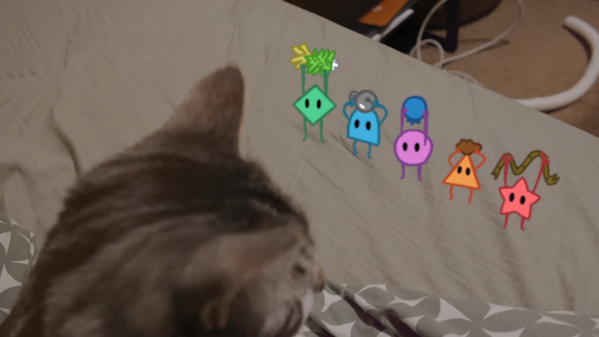Created as part of my Master’s in Animation, Games & Interactivity, this mixed-media 2D animated short follows a group of small, shape-like creatures who discover a giant cat and begin to worship it as a deity. As more and more creatures gather to seek its affection, the cat remains indifferent, even swatting them away. Eventually, the shapes give up, heartbroken by the cat’s lack of interest. But in their absence, the cat begins to miss them and slowly approaches, learning to appreciate their presence.